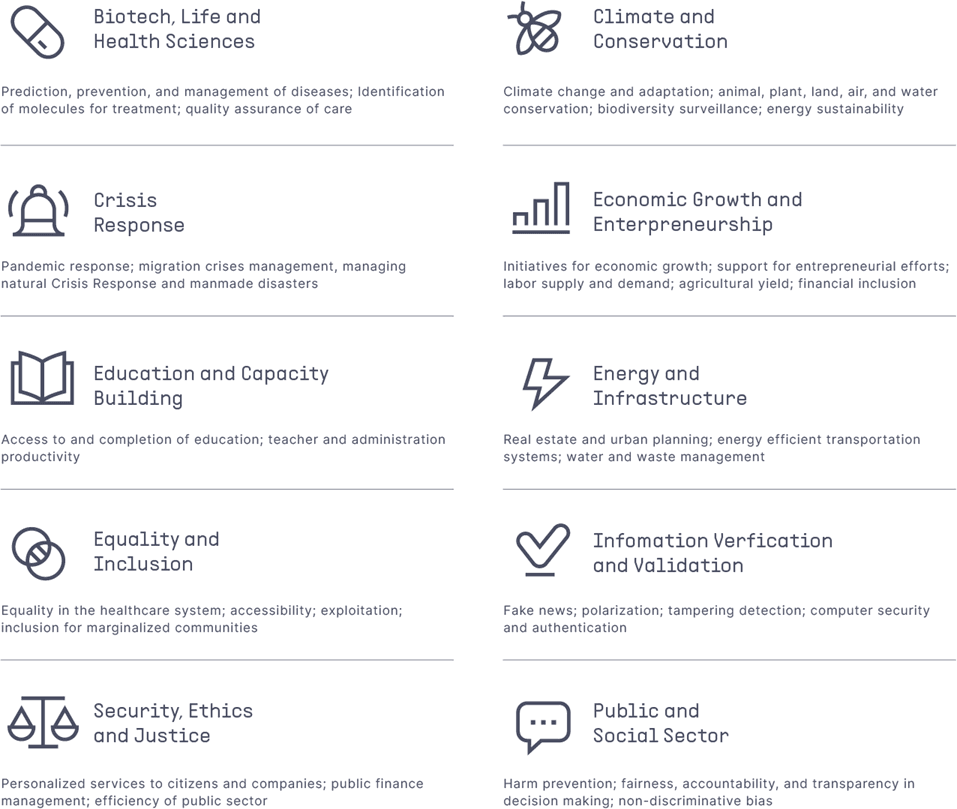 Many of the societal challenges intersect with each other. Inclusion, fairness and ethics are, for example, cross-cutting in all areas.